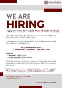 Amlegals is Hiring for Data Privacy & Employment Law Experts at [Ahmedabad, Pune, Kolkata, Bengaluru]
