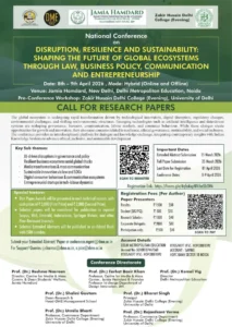 In an era marked by technological disruption, digital transformation, regulatory reforms, and sustainability concerns, global ecosystems are rapidly evolving. This national conference aims to explore how law, business policy, communication, and entrepreneurship can collectively shape resilient and sustainable futures.