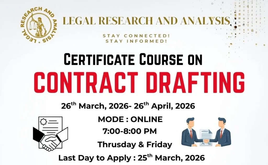 Are you a law student or legal professional looking to master contract drafting skills? The Online Certificate Course on Contract Drafting 2026 by Legal Research and Analysis is designed to provide practical, industry-focused training in drafting clear, enforceable, and professional contracts.